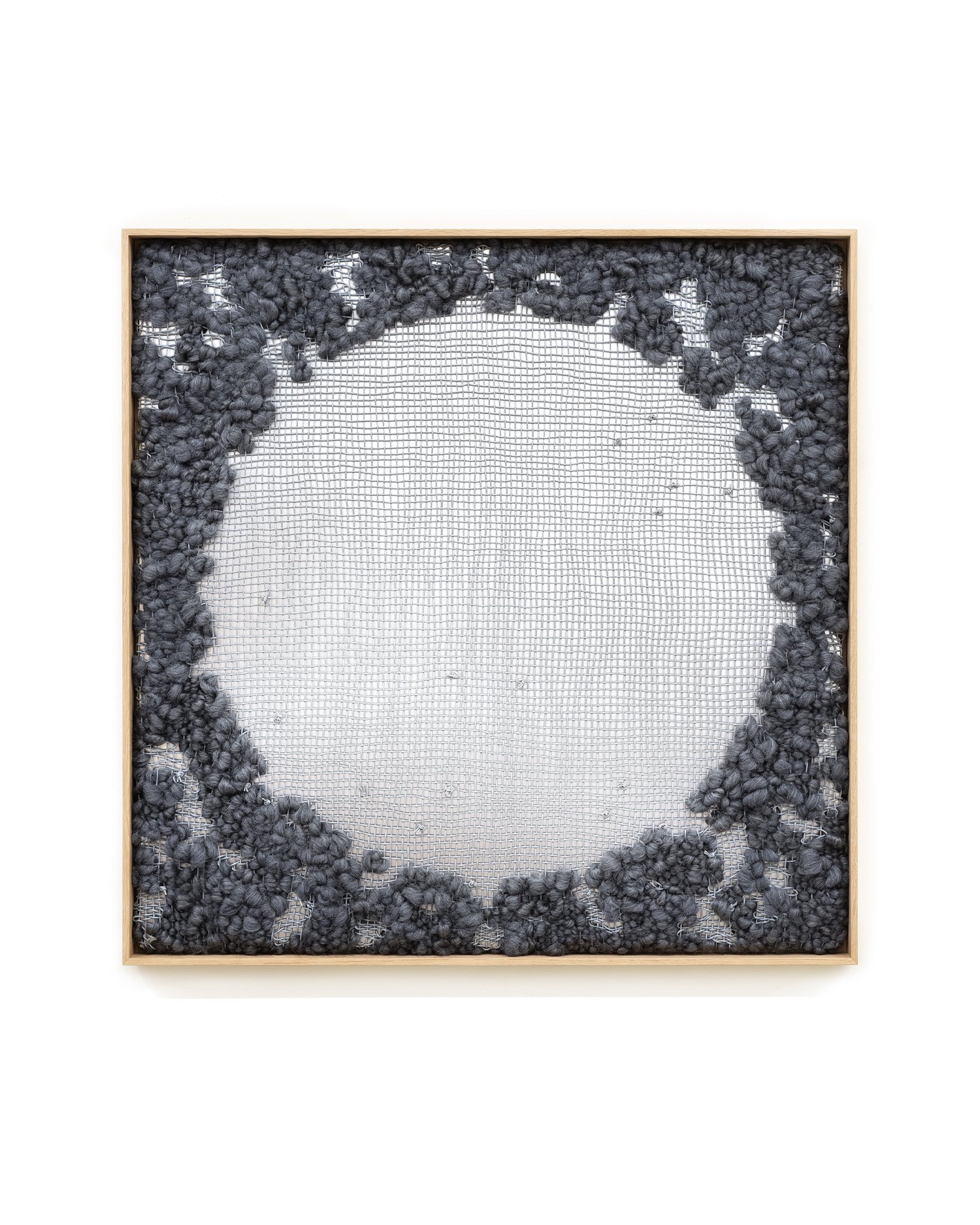 Painted cord, wool, painted panel and wood frame